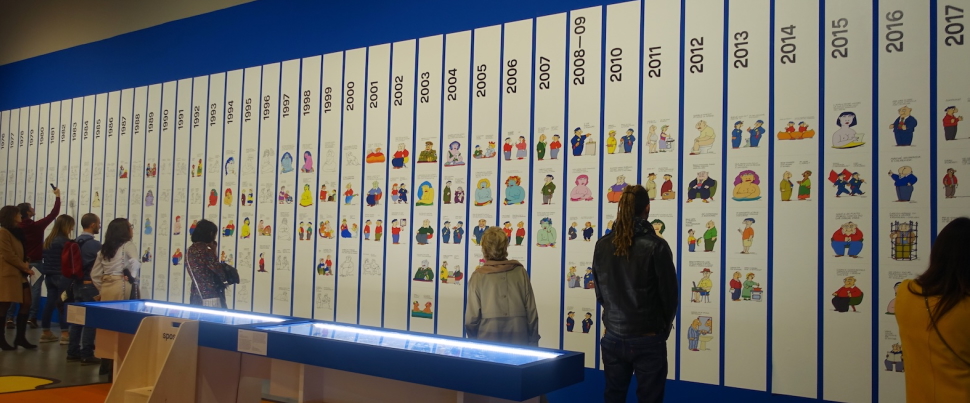 - La versatilità di Altan: Altan è noto per la Pimpa, personaggio tenero e iconico dell’infanzia di molti, ma questa mostra permette di esplorare anche il lato più disincantato e satirico del suo lavoro, come le vignette di Cipputi, il celebre operaio che, con tagliente ironia, ha rappresentato le contraddizioni del mondo del lavoro e della società italiana. L’esposizione offre uno sguardo unico e completo su queste opere, disposte in un grande pannello cronologico che permette di ripercorrere l’evoluzione del suo stile e della sua visione critica.