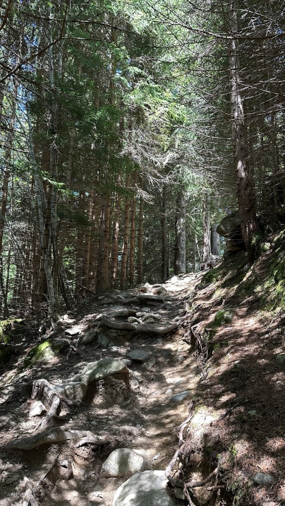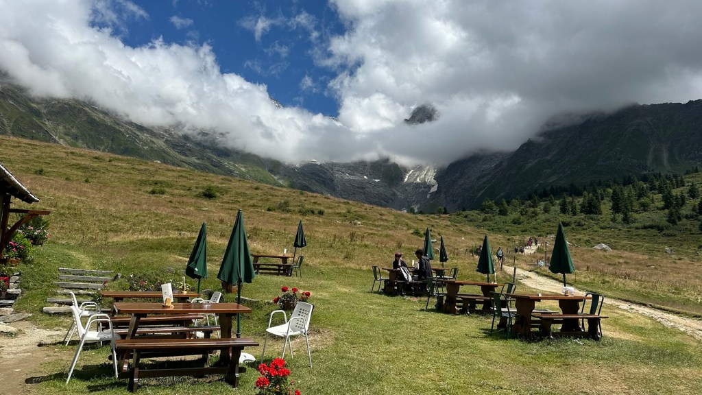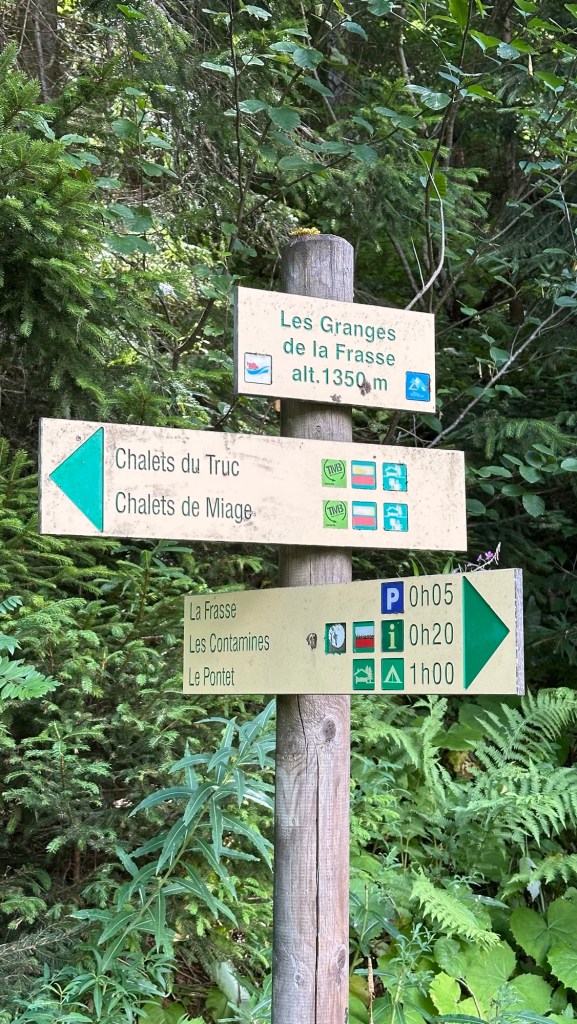 Ingresso riserva → Chalets du Truc Dopo aver superato l’area forestale, si raggiunge l’alpage dei Chalets du Truc (ca. 1811 m), circondati da panorami sulle Dômes de Miage, il Mont Joly, il Col du Tricot e l’Aiguille de Bionnassay.