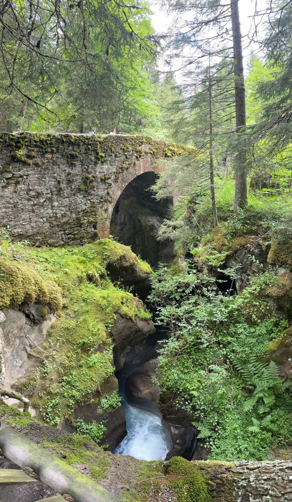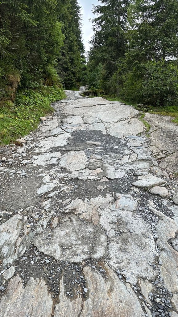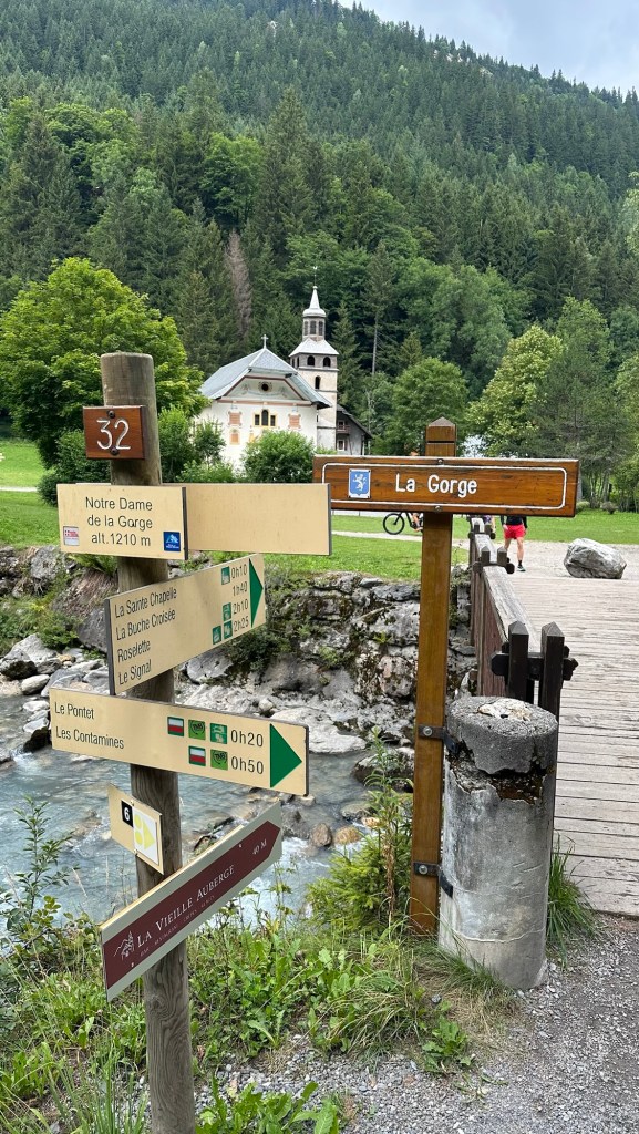 Notre-Dame de la Gorge → Pont Romain → Nant Borrant Si parte lungo l’antica voie romaine, una storica strada lastricata, inizialmente ripida ma ben tracciata. Si attraversano antichi ponti in pietra, tra cui il suggestivo Pont Romain,